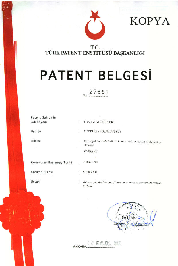 patent ("G" Model wind turbine)